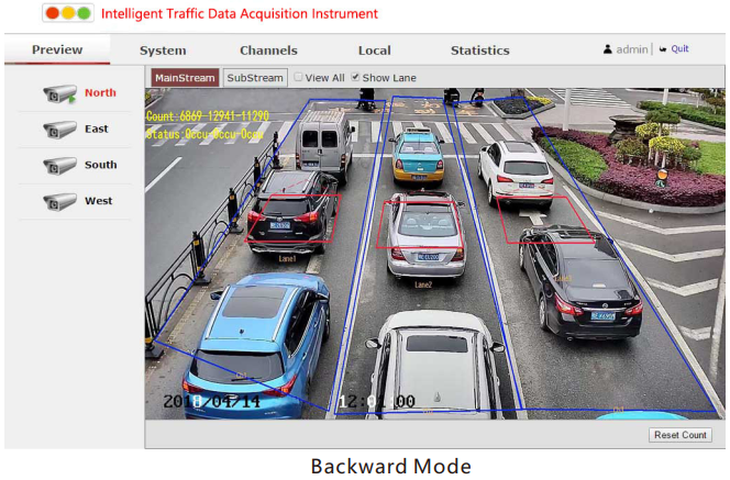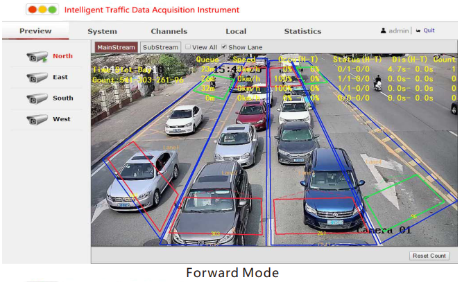 Video-based vehicle detectors are installed at every traffic intersection. By detecting and following all vehicles passing by, they can calculate the traffic volume according to a virtual counting gate.